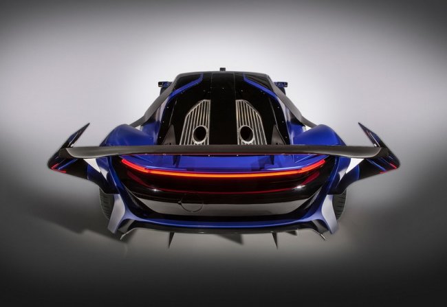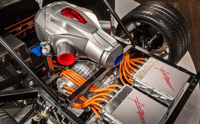 В электрическом суперкаре применили особую систему на основе микротурбогенератора, вырабатывающего электричество для подзарядки тяговых аккумуляторов емкостью 20 кВт*ч. Батареи питают шесть электродвигателей, вес каждого их которых составляет 13 килограммов. По одному агрегату разместили в передних колесах и еще по два – в задних. Суммарная отдача моторов составила 1044 лошадиных силы.