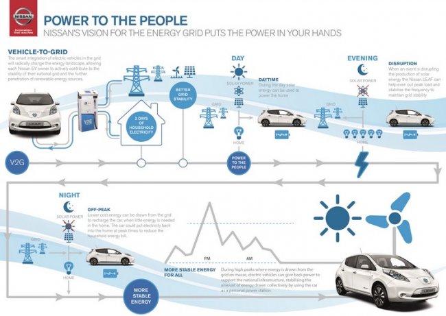 Интересно, что к юбилею электромобиля Nissan выпустил промо-видео, в котором рассказывается о разработке системы, позволяющей использовать Leaf в качестве мобильной электростанции. Предполагается, что увеличенная емкость батарей электрокара позволит снабжать энергией жилые дома, офисы и квартиры. Для этого «Ниссан» объединился с энергетической компанией ENEL. Итогом совместной работы стала система мобильного энергоснабжения Vehicle 2 Grid (V2G).