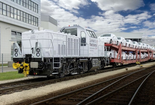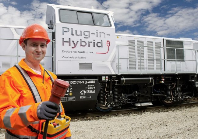Известный немецкий автоконцерн Audi становится на рельсы: 1000-сильный подключаемый гибридный локомотив произведенный совместно с французской машиностроительной компанией Alstom заменит применяемые сегодня на заводе Audi в Ингольштадте обычные дизелевозы. Таким образом предприятие, входящее в состав концерна Volkswagen Group, намерено получать компоненты и поставлять свою продукцию более экологичным способом.
