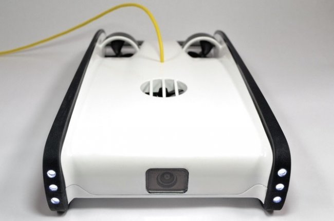 Компания называется «OpenROV Trident – подводный дрон для всех» и в ее рамках представлен мини-беспилотник, способный быстро перемещаться под водой и аккуратно маневрировать в недоступных для других средств пространствах. «Трезубец» имеет более гидропатическую форму в сравнении с предыдущей, 2012 года, версией беспилотника и компактные габариты (80 х 200 х 400 мм), позволяющие роботу «протиснуться» в практически любую расщелину.