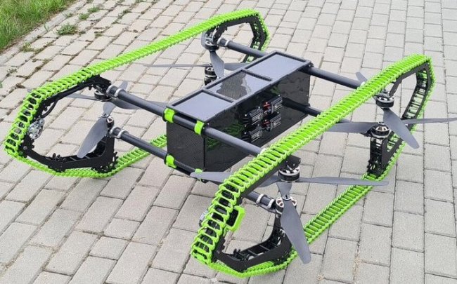 Дрон-вездеход летает по воздуху и ездит по земле на гусеницах - «Транспорт»