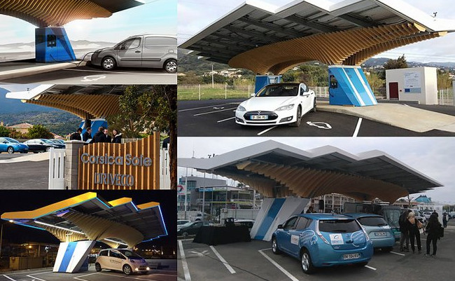 Одна Driveco Parasol сможет одновременно заряжать семь транспортных средств от скутеров до полноценных электромобилей. В настоящее время две станции уже введены в строй в городах Бастия и Аяччо в Южной Корсике.