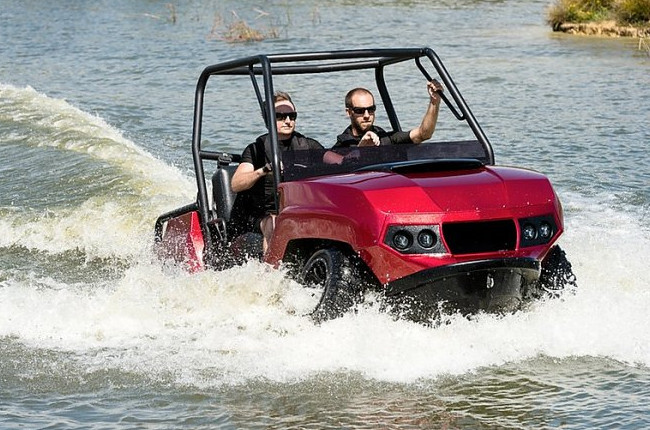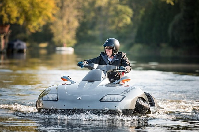 Известный разработчик амфибий Алан Гиббс представил на ежегодной выставке мотоциклов во Флориде средства для «скоростного» отдыха – несколько необычных моделей амфибий. Достаточно одного нажатия кнопки, как обычный на первый взгляд «сухопутный» мотоцикл, поджав колеса, в течение пяти секунд