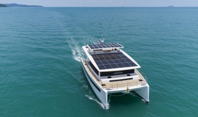 Яхта самостоятельно генерирует электричество с помощью 42 солнечных батарей, выдающих мощность до 17 кВт. Такой производительности достаточно, чтобы каждый день проходить до 160 км без дополнительного питания.