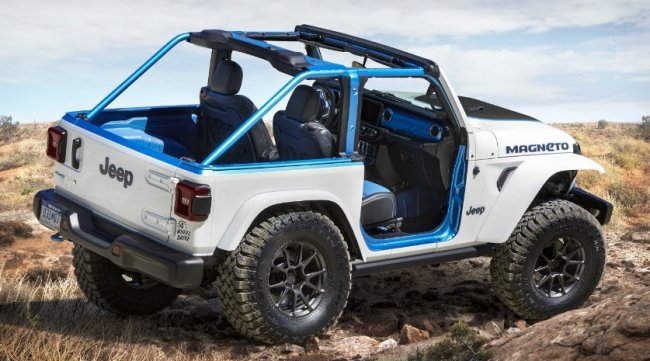 Для ежегодного мероприятия Easter Jeep Safari Jeep представил прототип своего первого электромобиля — Wrangler Magneto. Единственное существенное отличие электрифицированной модели от бензиновой — электродвигатель и аккумуляторы вместо ДВС и бензобака.