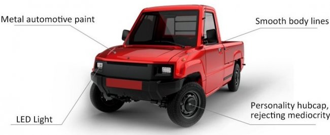 Среди миллионов товаров, представленных в китайском интернет-магазине Alibaba.com продаются даже электромобили. Один из них — компактный электрический пикап грузоподъемностью 500 кг. Он выпускается в двух вариантах.