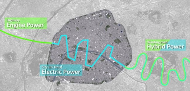 При перемещении по городу можно будет полностью переключиться на электротягу. Это позволит проехать в места, где разрешено движение исключительно транспортных средств с нулевым уровнем выбросов, а неизбежные в городском трафике периодические разгоны и замедления помогут восполнить запас энергии в батарее за счет рекуперативного торможения.