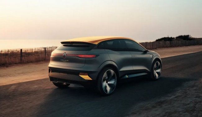 Первый прототип — Renault Megane eVision, электрический хэтчбек, который станет серийным в следующем году. Автопроизводитель заявил, что машина получит электромотор мощностью 160 кВт (218 л. с.) и батарею на 60 кВт•ч. Аккумулятор можно будет заряжать или постоянным током мощностью до 130 кВт на станции быстрой зарядки, или от бытовой сети с помощью встроенного зарядного устройства на 22 кВт.