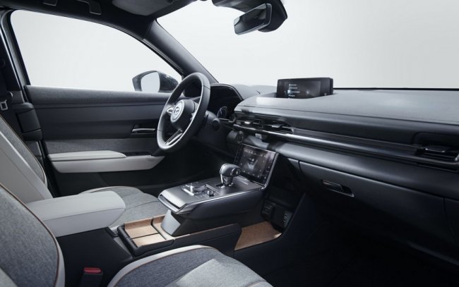 Электромобиль создан на той же платформе, что и кроссовер CX-30, который оснащается двигателем внутреннего сгорания. Однако MX-30 получил оригинальный, подчеркнуто простой дизайн и открывающиеся против хода задние двери. Наиболее интересные особенности салона — плавающая центральная консоль и сенсорный семидюймовый дисплей мультимедиа системы. В отделке использованы экологически чистые материалы, например, пробка и продукты переработки пластиковых бутылок.
