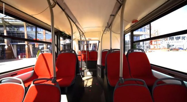 Автобус дополнительно оснащен пандусом для инвалидов, системой кондиционирования воздуха в салоне и USB-портом рядом с каждым сиденьем. В кабине водителя обращает на себя внимание контраст старомодных тумблеров и цифровой приборной панели.