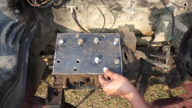 Для создания проекта потребовались: хэтчбек Maruti 800 (индийский вариант Suzuki Alto), электродвигатель, контроллер, аккумулятор, ручка акселератора для электровелосипеда и толстая стальная пластина.