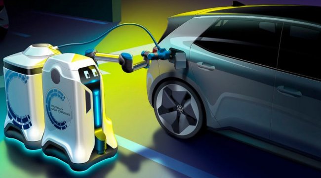 Volkswagen представил свое видение проблемы зарядки электромобилей на парковках, где нет соответствующей инфраструктуры. Она может быть налажена с помощью специальных роботов-заправщиков, полагают в компании. Управлять ими можно через мобильное приложение, и все что будет требоваться от водителя — это просто выбрать необходимую опцию в меню. Робот сам привезет зарядную батарею и подключит ее к автомобилю.