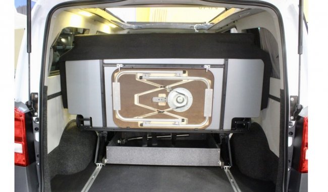 Заднее сиденье складывается, образуя двуспальную кровать, предусмотрено также второе спальное место на двоих. Еще одному участнику поездки на пятиместном Weekender E придется дополнительно позаботиться о ночлеге. Автомобиль оборудован складным столом, ящиками под сиденьем, теплоизоляцией и системой климат-контроля, управляемой с помощью приложения. Высота электрокара не превышает 2 метров, он легко помещается в гараж.