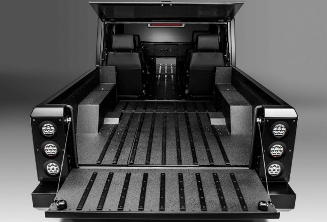 Электрокары Bollinger получили алюминиевый кузов и интерьер без всяких излишеств: обычные сиденья, «голый» металл, минимум пластика. Производитель не раскрыл информации о наличии систем безопасности, но известно, что в авто есть кондиционер и аудиосистема. При желании, двери и крышу можно демонтировать, причем сама крыша может быть панорамной.