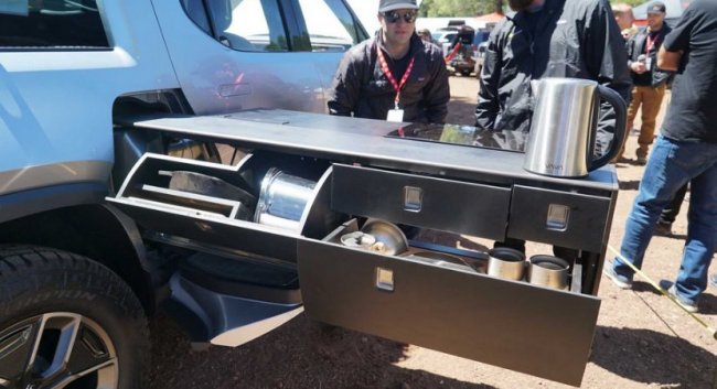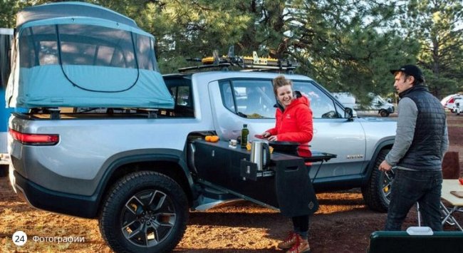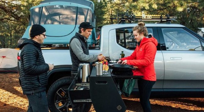 Мощнейшая батарея электромобиля-кемпера Rivian R1T обеспечит работу полевой печи - «Транспорт»