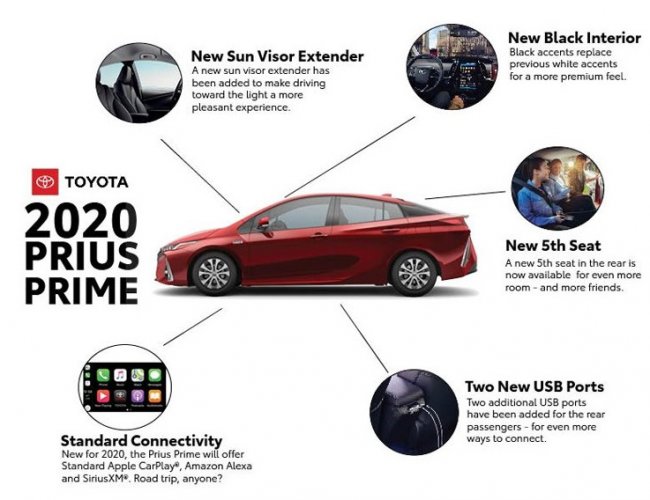 Обновленная модель Toyota Prius 2020 года впервые получит новые элементы пользовательского интерфейса, включенные в базовую комплектацию. Компания добавила информационно-развлекательную систему сопровождения водителя от Apple CarPlay во все свои автомобили, а в 2020 Toyota Prius Prime в стандартной