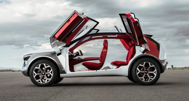 Конечно же, дизайн новинки имеет много общего с кроссовером Kia Niro EV – у моделей даже перекликаются названия. Отличительной особенностью экстерьера HabaNiro стали двери «кралья-бабочки», которые распахиваются вверх. Подобное конструктивное решение органично сочетается со стеклянной крышей. Габариты электрокара составляют в метрах 4,43х1,95х1,6 – соответственно длина, ширина и высота.