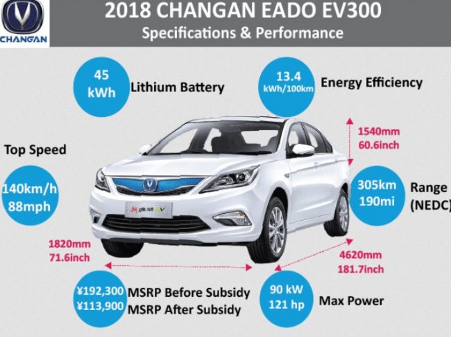 Для справки: на китайском рынке электромобиль Changan Eado EV (Eado EV300) продается по цене от 160 000 юаней (около 23 000 долларов). Модель имеет запас хода 300 км и двигатель мощностью в 122 лошадиные силы.