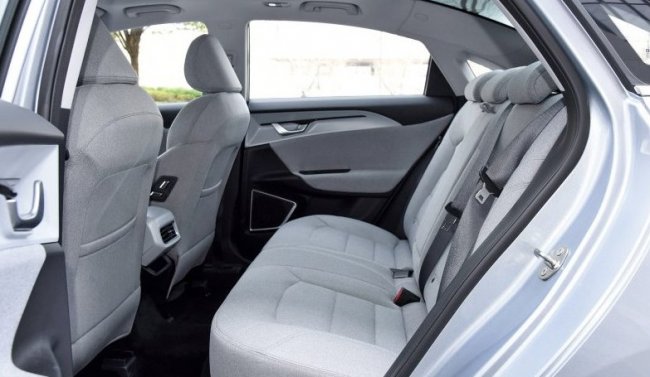 В отличие от экстерьера интерьер электромобиля вызывает больше эмоций: тканевая отделка сидений и дверных панелей, хромированные элементы, включая дверные ручки. GE11 поражает футуристичным рулевым колесом всего лишь с двумя спицами и отсутствием традиционной приборной панели под ним.