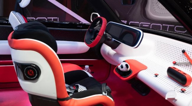 Для еще большей кастомизации интерьера монолитная приборная панель с одним дисплеем содержит целую сетку из отверстий (их тоже 120). Причем заменить даже этот дисплей можно будет смартфоном, который послужит «сердцем системы». В целом дизайн концепта очень сильно напоминает Fiat Panda, и в качестве отсылки к этой модели на «торпеде» закрепили маленькую фигурку панды.