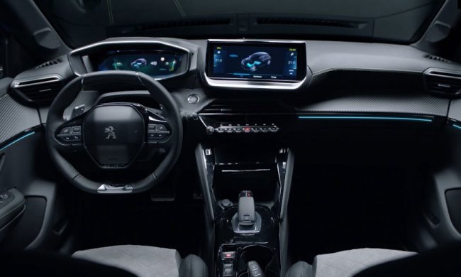 Внутри электромобиля — салон i-Cockpit следующего поколения, который ранее был представлен в концепте Peugeot Fractal. Он представляет собой трехсекционную структуру с 3D-приборной панелью, верхняя часть которой демонстрирует информацию в «голографической форме», и центральным тачскрином с диагональю в десять дюймов.
