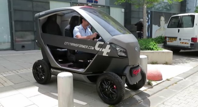 Автомобильный стартап City Transformer предложил иное инновационное решение – электромобиль со складным шасси, который позволит уменьшить парковочное место транспортного средства до одного метра. Изобретатели обещают, что ездить и парковаться в городе станет намного проще, когда на одном стандартном месте стоянки смогут уместиться четыре складных автомобиля.