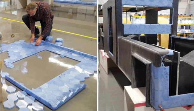 «Первые блоки мы изготовили из домашних пластиковых отходов – резали и переплавляли пластиковую тару, превращая их в массу для 3D-печати. После отработки технологии мы вышли на промышленный уровень, печатая блоки из гранул, которые брали на мусороперерабатывающем заводе. Всего мы изготовили 4000 блоков. Шестиугольная форма выбрана по тому же принципу, по которой пчелы строят шестиугольные соты – это самая легкая и прочная структура», - пишут изобретатели.