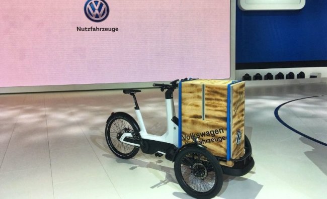 Накануне немецкий концерн в деталях рассказал о своей глобальной платформе для электромобилей — MEB. Самым массовым автомобилем на ней должен стать электрический аналог модели Golf, но сначала VW намерен заинтересовать грузоперевозчиков и райдшеринговые сервисы: на профильной выставке IAA им показали пять электрических моделей автомобилей, водородный фургон и трехколесный электровелосипед для доставки грузов.