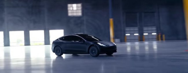 Следующее, что привлекает внимание в ролике, - это демонстрация нового поколения Tesla Roadster в действии. Также очень интересен и момент с ездой матовой “Тройки” по пустому ангару, вот она: