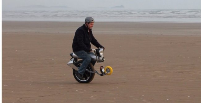Британский умелец продемонстрировал возможности одноколесного байка в небольшом любительском видео: