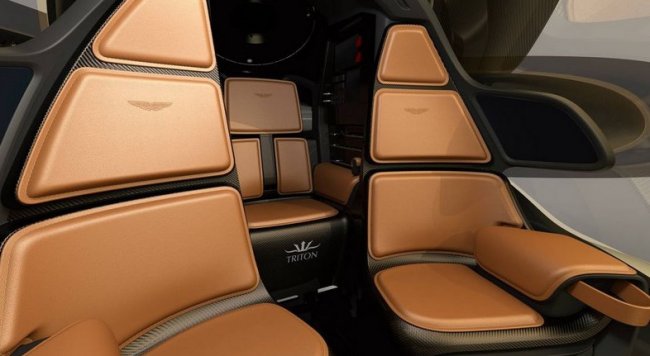 Внутри могут поместиться три человека. Интерьер Project Neptune выдержан в традициях Aston Martin – с кожей и карбоном в отделке. Предусмотрен и кондиционер.