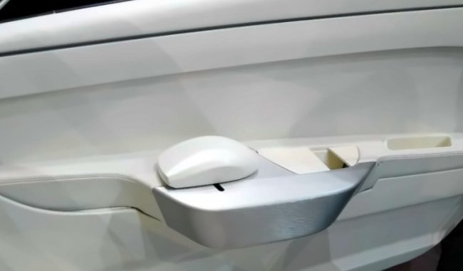 Интерьер машины футуристичный — в ней нет руля. Перед водителем только экран большого монитора и одна педаль. Функции управления двухколесным электрокаром отданы компьютерной мыши, расположенной на правом подлокотнике двери.