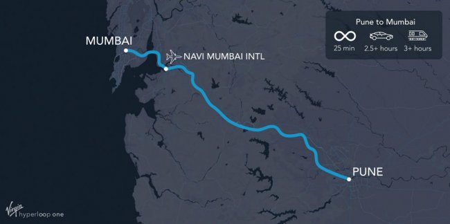 Стартап Virgin Hyperloop One (бывший Hyperloop One), финансируемый британским миллиардером Ричардом Брэнсоном, планирует построить первую линию сверхзвукового поезда в Индии. Магистраль соединит город Пуне с новым аэропортом вблизи Мумбая, сократив время передвижения, приблизительно, с 3 часов до 25 минут.