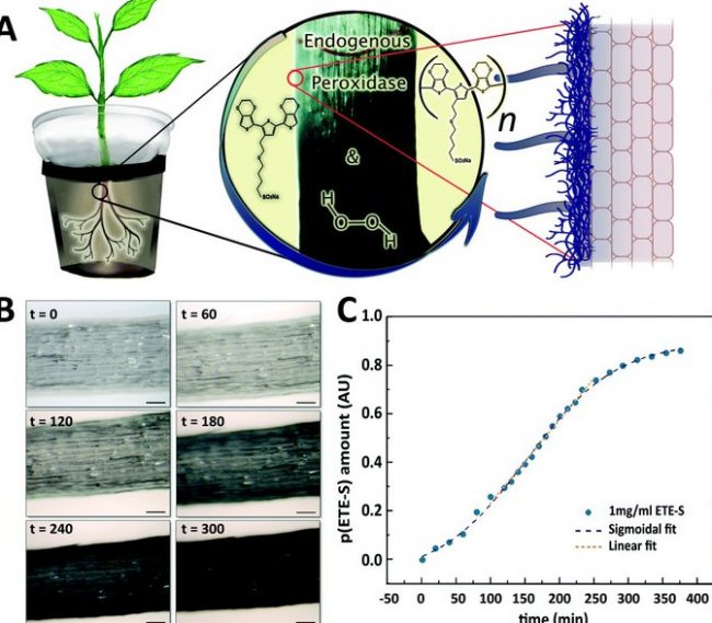 В своей работе ученые использовали тример ETE-S, который полимеризуется естественным путем на растении. На корнях растения образуется проводящая пленка полимера, которая заставляет всю корневую систему функционировать как сеть легкодоступных проводников.