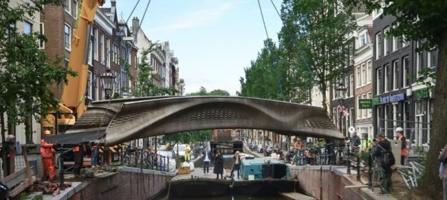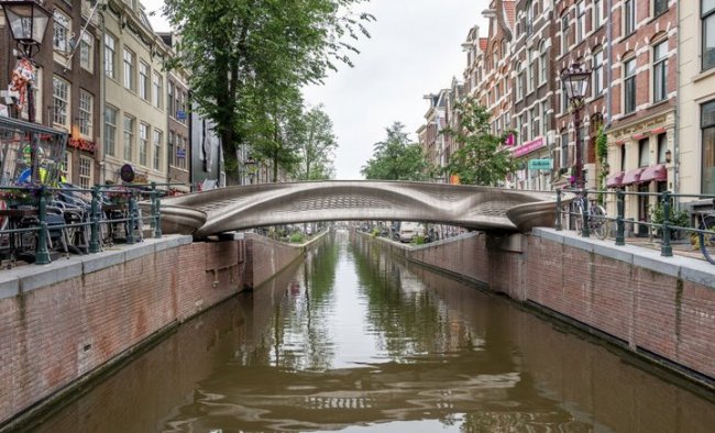 Компания MX3D реализовала свой амбициозный план по установке металлического пешеходного моста, произведенного путем 3D-печати, через канал в Амстердаме. Официальное открытие объекта состоялось при личном участии королевы Нидерландов.