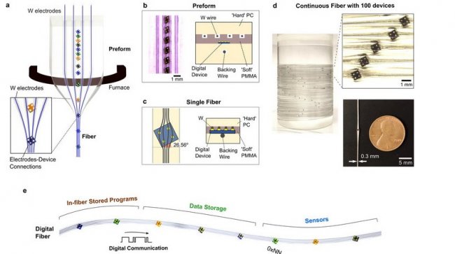 Ученые из Массачусетского технологического института, возглавляемые Йоэлем Финком, создали первую в мире ткань, способную получать, хранить и обрабатывать информацию. Для этого они встроили сотни соединенных между собой цифровых микросхем на основе кремния внутрь полимерного волокна.