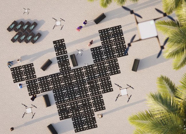 Один из вариантов использования дронов подразумевает их применения для проведения световых шоу. При этом возникает необходимость одновременно заряжать и запускать множество квадрокоптеров. Помочь с решением этих задач призвано Flying Drone Blanket — «Одеяло для летающих дронов».