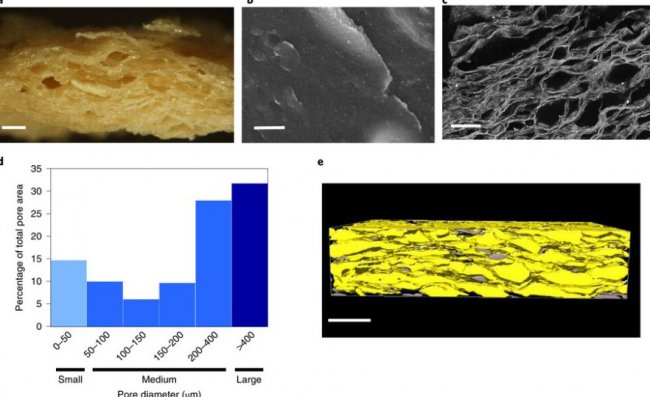 Но для полноценного роста внеклеточные структуры ткани (матрикс), обеспечивающие транспортировку химических веществ и механическую поддержку клеток, необходимо заменить какой-либо съедобной альтернативой. На эту роль и был выбран соевый белок, являющийся побочным продуктом выработки соевого масла. Он имеет пористую структуру, мелкие ячейки хорошо подходят для прикрепления и разрастания клеток. Более крупные ячейки служат для доставки кислорода и питательных веществ для мышечной ткани. Соевый белок оказался технологичным материалом, из которого можно создать основу для выращивания мяса с заданными параметрами.