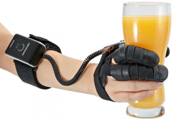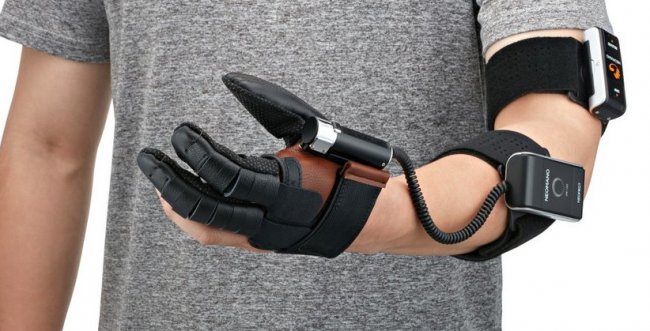 Идея создания специального приспособления для людей с обездвиженной рукой была воплощена корейским стартапом Neofect. Перчатка NeoMano, надевающаяся на большой, указательный и средний пальцы, снабжается электричеством с помощью блока питания на трех батарейках AAA, который прикрепляется к предплечью эластичной лентой. Оба компонента соединены проводом. Третья составляющая системы – пульт дистанционного управления, подающий сигнал через Bluetooth. Его можно взять в другую руку, положить на стол, либо прикрепить к парализованной руке.