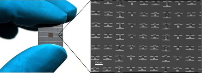 Для запуска робота в работу ученые светят лазером на его солнечный элемент. В результате такого воздействия платиновый слой в ножке расширяется, а титан остается в неизменном состоянии, ножка сгибается и запускается в движение.