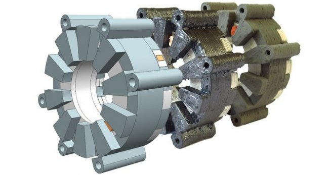 Проектом по созданию первых полностью 3D-печатных электромоторов занимаются исследователи Хемницкого технического университета. В своих экспериментах команда использует доступный метод экструзионной 3D-печати, называемый «робокастингом» или «Direct Ink Writing» – построение слоев вязкими материалами. В качестве расходников использовались различные пасты, состоящие из связующего вещества и наполнителей из керамики, железа и меди. После печати элементы моторов подвергались обжигу. С отладкой аддитивного процесса помогала баварская компания ViscoTec, занимающаяся производством насосных и дозирующих систем и выпускающая специализированные экструдеры для работы с вязкими материалами.