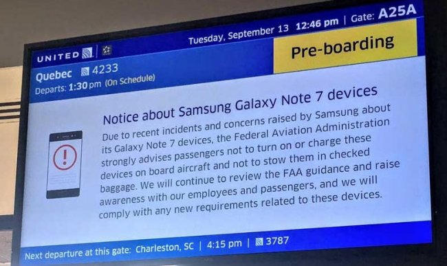 Федеральное управление гражданской авиации США также обновило рекомендуемые меры безопасности, призывая всех пассажиров отключать все модели Samsung Galaxy Note 7 и не заряжать их, а также не хранить в зарегистрированном багаже.