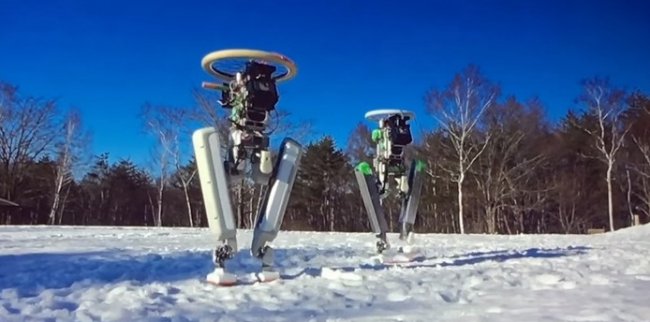 Робота на днях представили гостям Нового экономического саммита NEST 2016 в японском Токио. На демонстрационном видео видно, что аппарат может справиться со случайными округлыми препятствиями, которые бросили ему "под ноги". Машина лучше реагирует на неожиданную дестабилизацию положения, чем большинство людей.