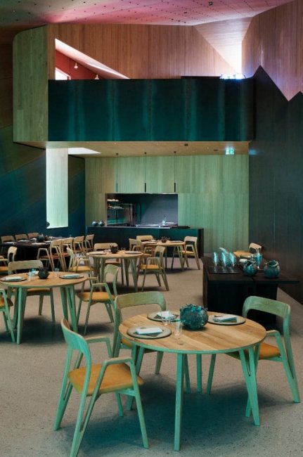 Длина сооружения 34 м, полезная площадь 600 кв.м., а толщина стен – более 1 м. Разработчики говорят, что их детище выдержит любой шторм, включая и прогнозируемые катаклизмы уровня «бури столетия». Ради этого пришлось отказаться от огромных панорамных окон в первоначальном проекте, ограничившись просто большими оконными проемами в толще стен. Главный зал погружен на глубину 5 м, вход в ресторан находится на поверхности земли – здание располагается под углом и визуально «уходит» в море.